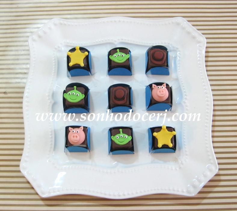 Bombom Modelado Toy Story: Chapéu(2), E.T.(4), Porco(3), Distintivo(1)