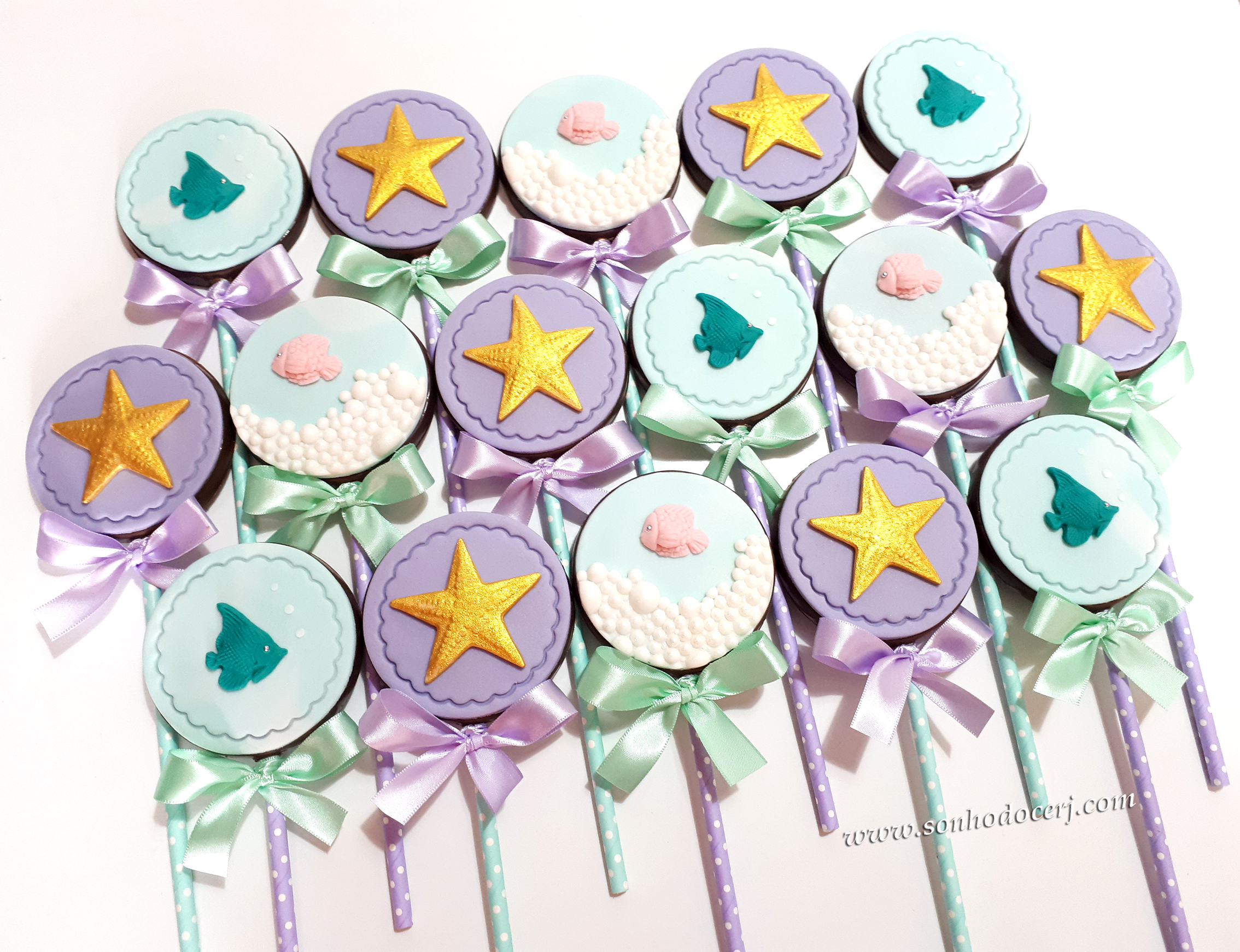 Pirulitos de chocolate “Pequena Sereia”! Personalize com as cores da sua festa!