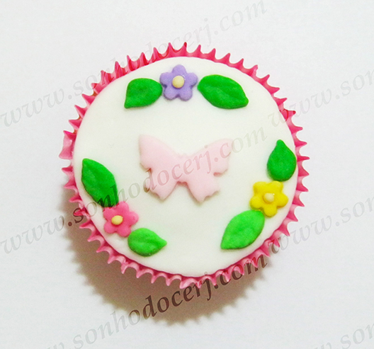 Cupcake Silhueta borboleta com flores e folhas! (C)