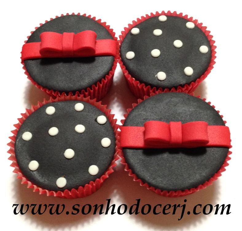 Cupcakes que combinam perfeitamente com o tema “Joaninhas”!! Bolinhas (A), Lacinho 3D (B)