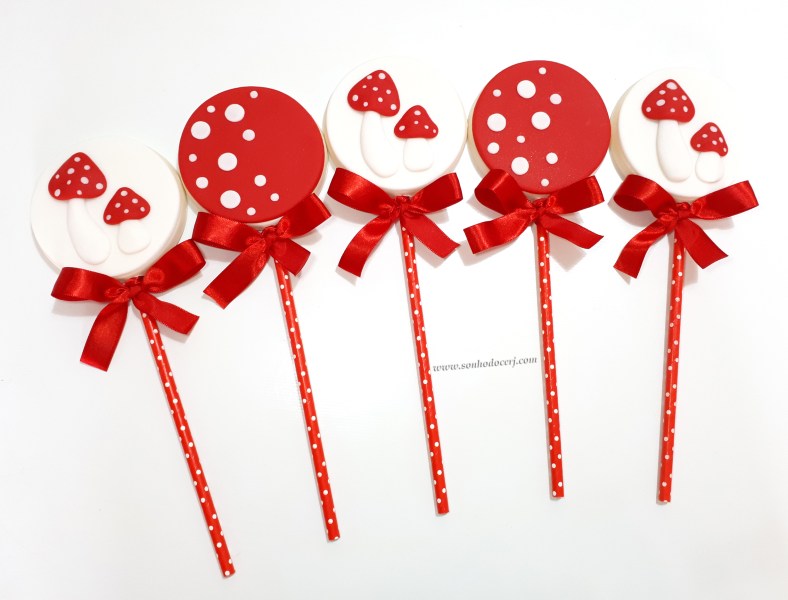 Pirulitos de chocolate “Jardim”! Dupla de cogumelos (9,00), Estampa cogumelo (7,00)
