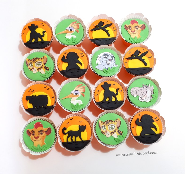 Cupcakes “Guarda do Leão”! Silhueta pôr do sol (8,00), Rosto personagem em papel arroz (Kion, Fuli, Bunga, Ono, Beshte) (10,00)