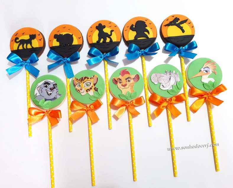 Pirulitos de chocolate “Guarda do Leão”! Silhueta pôr do sol (7,00), Rosto personagem em papel arroz (Kion, Fuli, Bunga, Ono, Beshte) (9,00)