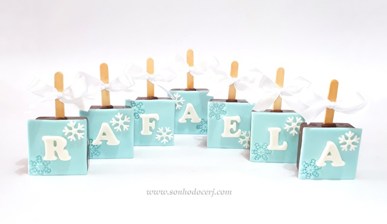 Pão de mel no palito “Frozen”! Letra ou número com detalhes de flocos de neve (10,00)