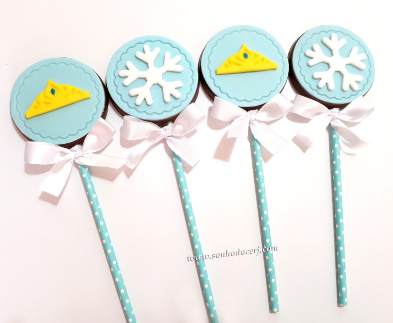 Pirulitos de chocolate “Frozen”! Coroa (5,00), Floco de neve (5,00)