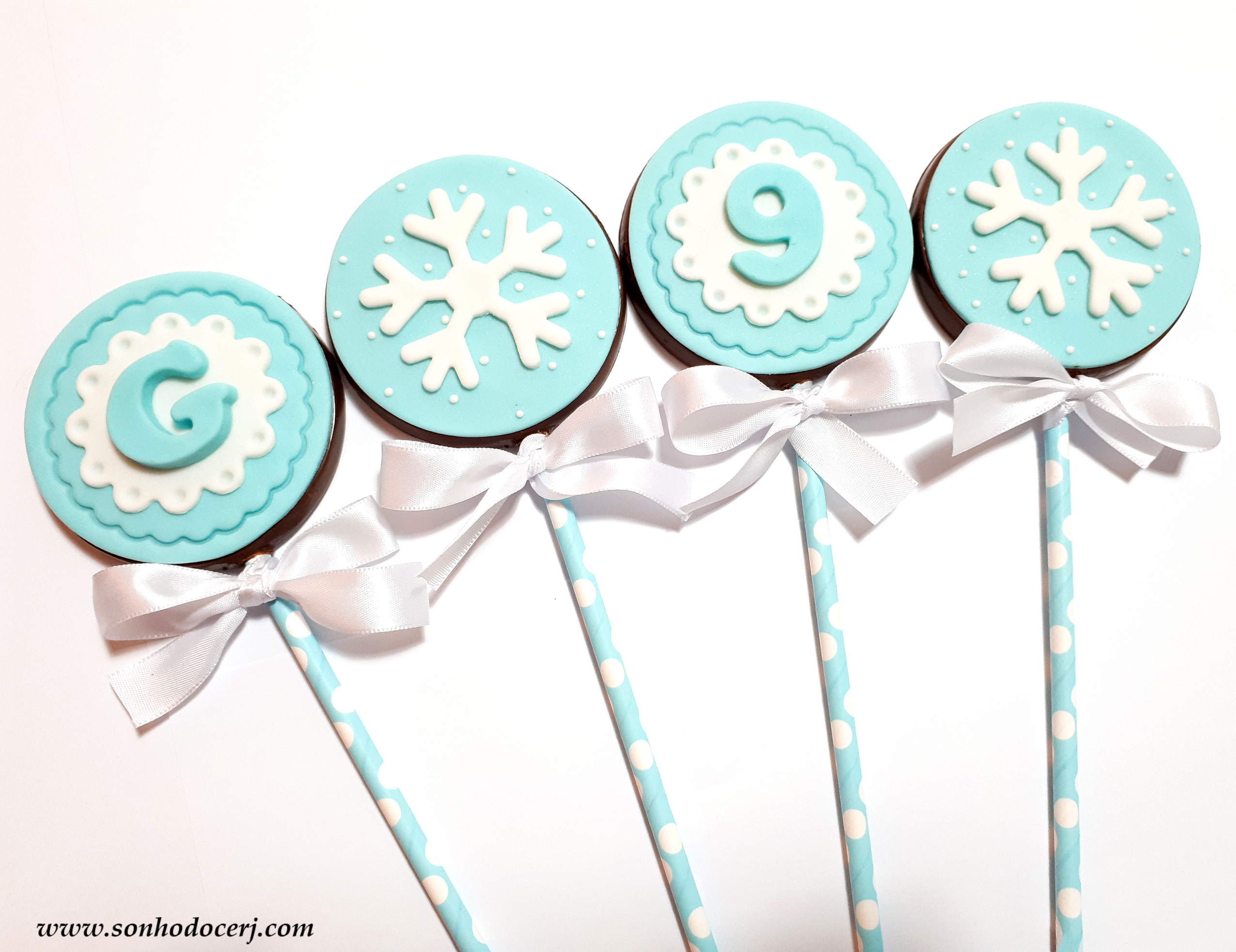 Pirulitos de chocolate Frozen! Letra ou número com fundo escalopado (5,00), Floco de Neve (5,00)