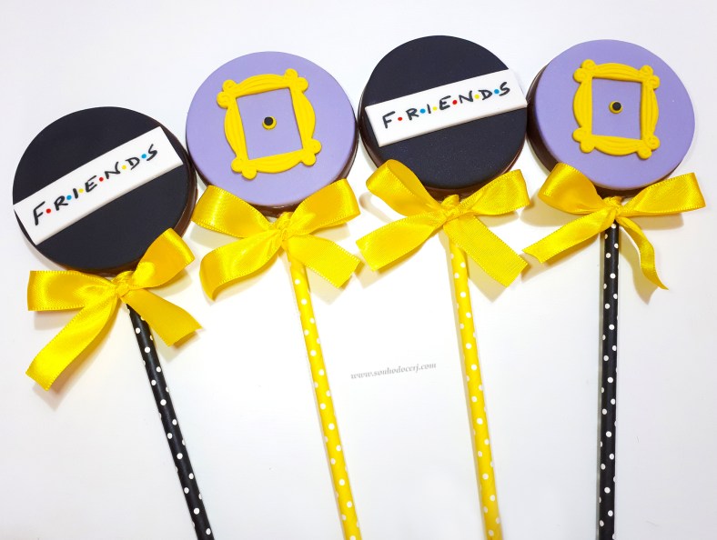Pirulitos de chocolate “Friends”! Logo Friends (7,00), Olho mágico com moldura (7,00)