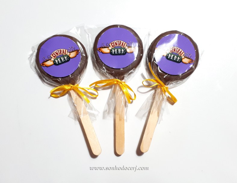 Pirulito de biscoito com rótulo personalizado no tema “Friends”!