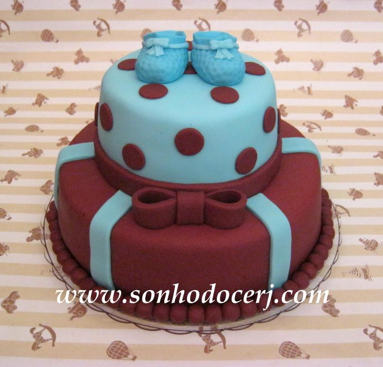 Bolo “Chá de bebê/Maternidade com sapatinhos (faixas e bolinhas)” (Cód: B180)