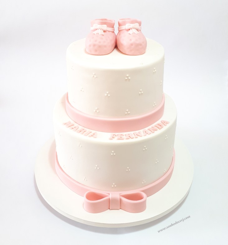 Bolo Chá de bebê com trios de poás e sapatinhos (2 andares)! (Cód.: B277)