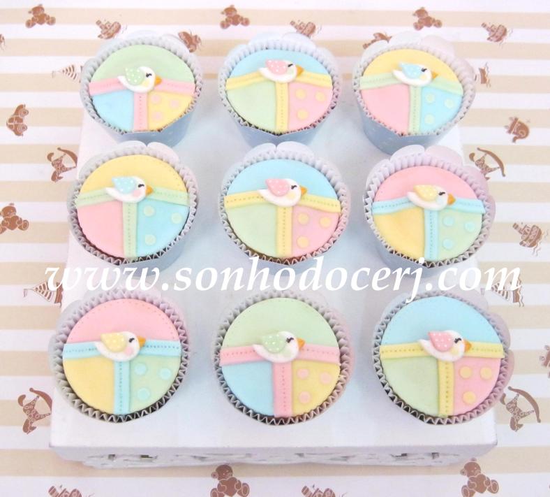 Cupcakes Passarinho! (Fundo liso (D) / Fundo retalhos (F))