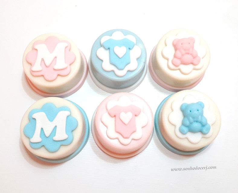 Mini pão de mel redondo “Chá de bebê”! Ursinho (6,50), Body (6,50), Letra (6,50)