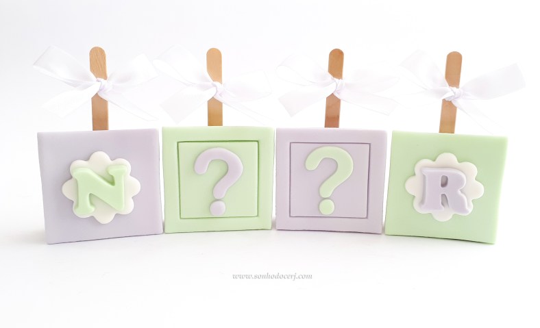 Pão de mel no palito! Letra ou número com fundo flor (14,00), Interrogação (14,00)