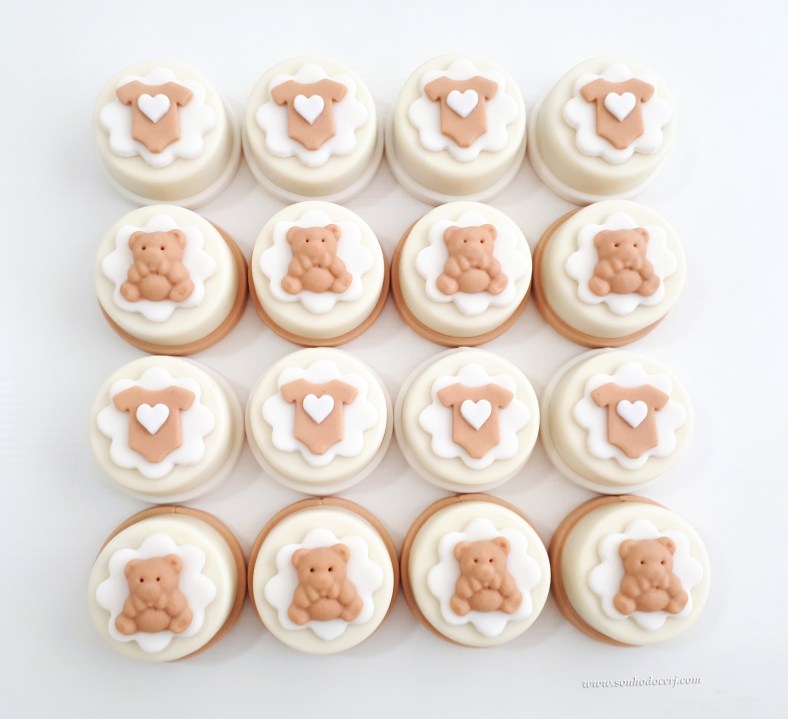 Mini pão de mel redondo “Chá de bebê”! Ursinho (9,00), Body (10,00)