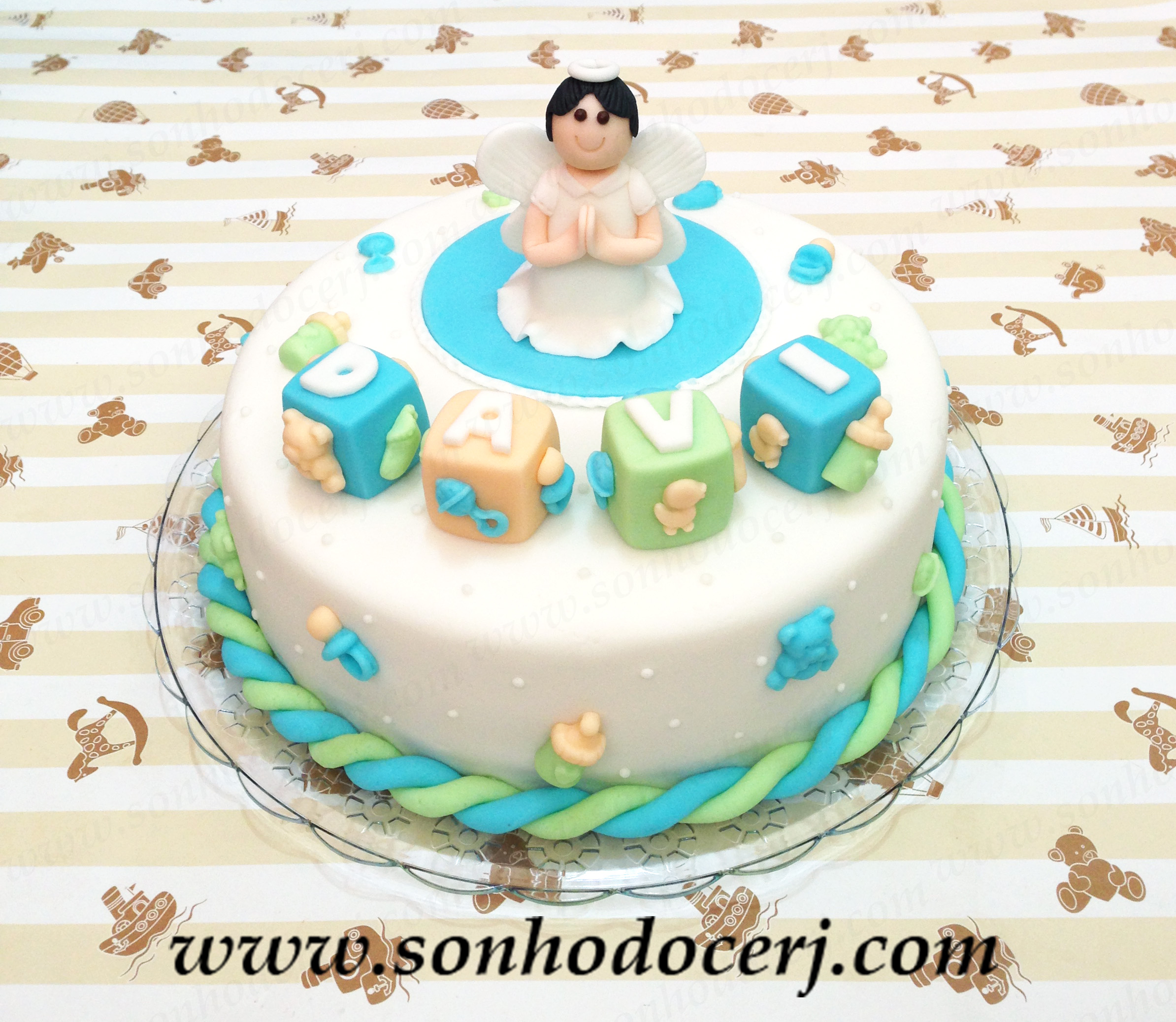 Bolo Batizado anjinho com cubos! (Cód.: B281)