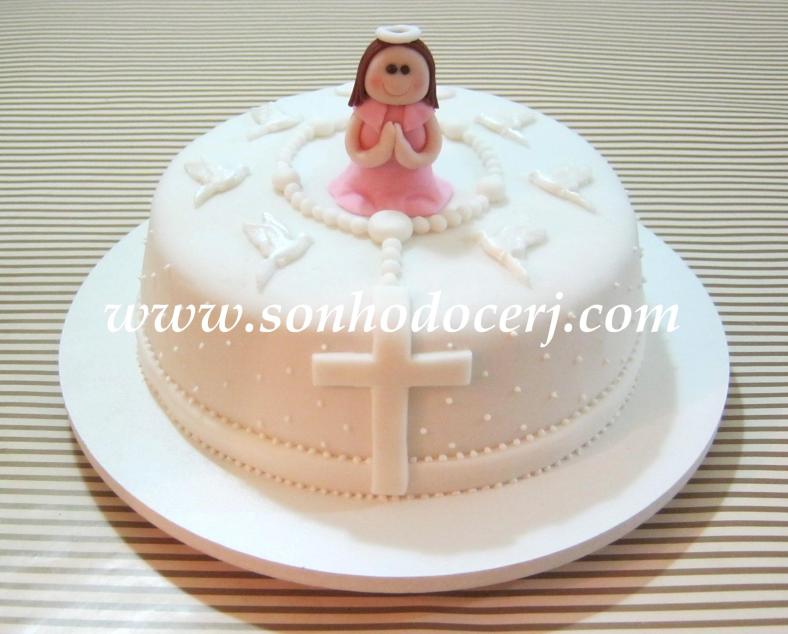 Bolo Batizado/1ª Comunhão com terço e pombinhas!