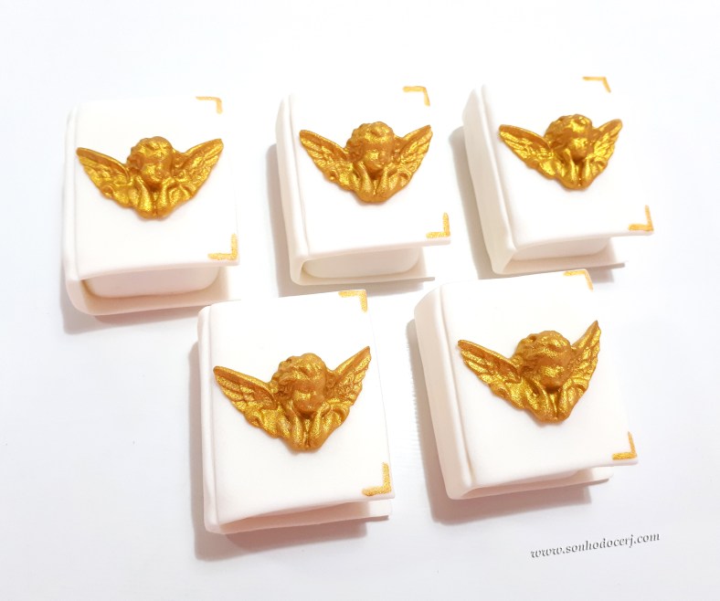 Pão de mel “Batizado / Primeira comunhão”! Pão de mel em formato de Bíblia anjo dourado (11,00)