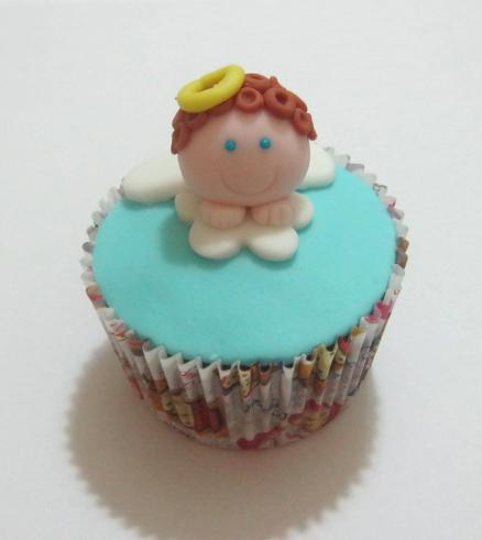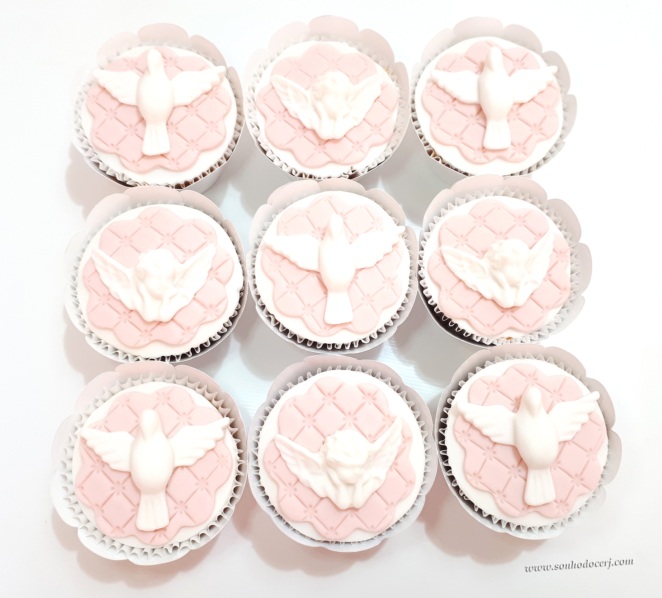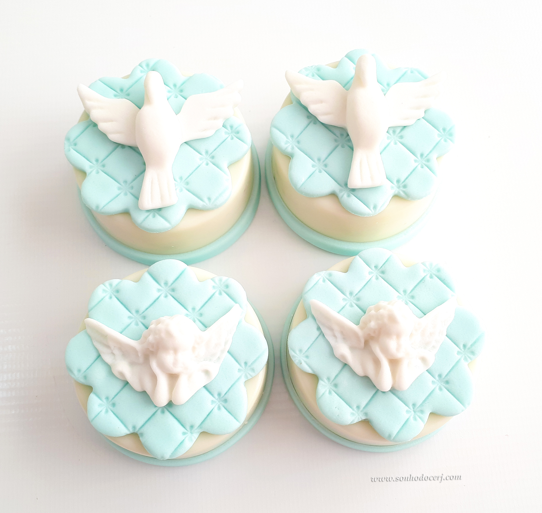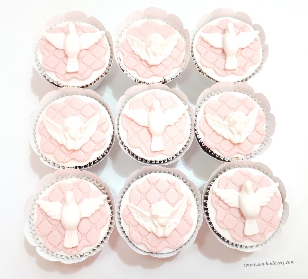 Cupcakes Batizado / 1ª Comunhão! Pombinha branca grande com fundo matelassê (11,00), Anjo branco com fundo matelassê (11,00)