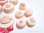 Doces decorados para Chá de bebê! Pão de mel redondo (pezinhos, cegonha, carrinho de bebê – 13,00 / chupeta, sapatinhos, body – 14,00 / bebê – 19,00), Mini pão de mel redondo (letra, ursinho – 9,00 / body, chupeta – 10,00), Pão de mel em formato de cama (20,00), Bombons arredondados (flor, mamadeira (7,50), laço 3D (8,50) ), Bombom arredondado grande (mamadeira 9,00), Pirulitos de chocolate (babador, casaquinho – 11,00)