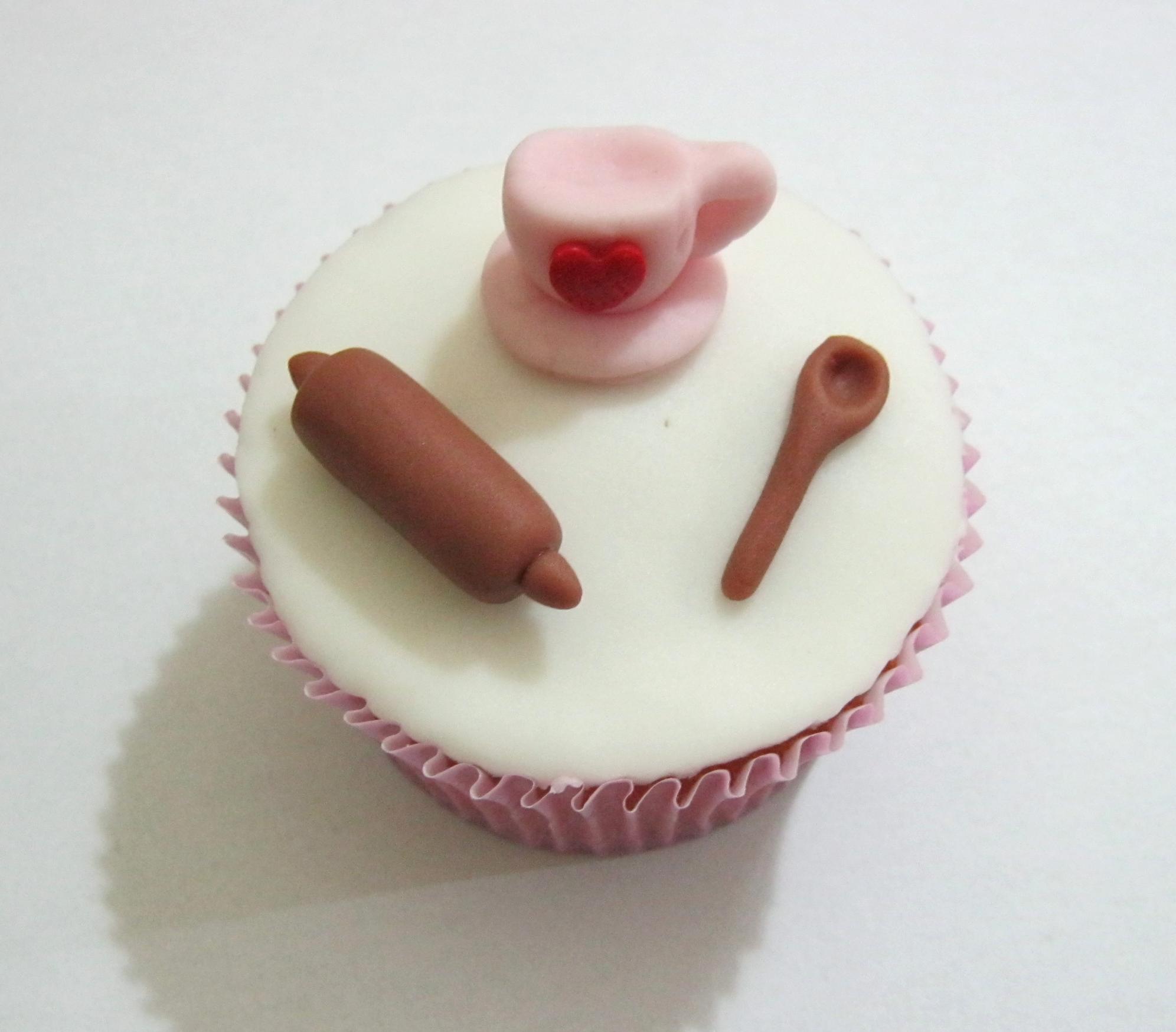 Cupcakes “Chá de Panela”! Bule, rolo de macarrão e colher (12,00), Frigideira (12,00), Bule e Xícara (11,00)