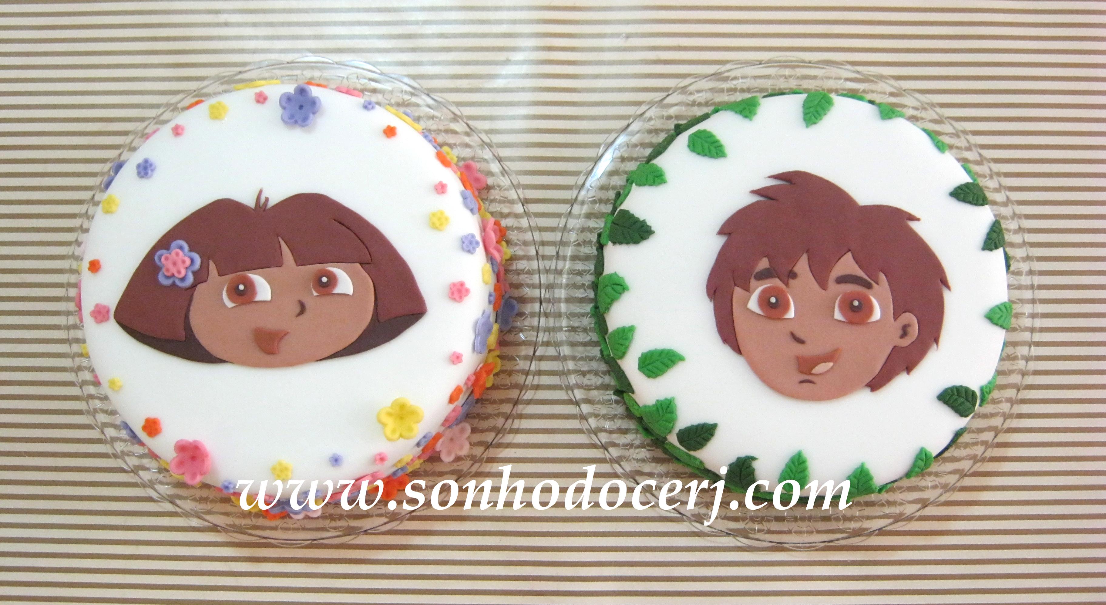 Bolos “Dora e Diego”! Rostinhos esculpidos com bisturi em açúcar! (Dora – Cód: B060 / Diego – Cód:B061)