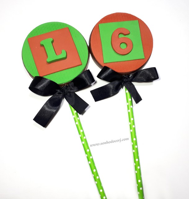 Pirulitos de chocolate “Minecraft”! Letra ou número com fundo quadrado (10,00)