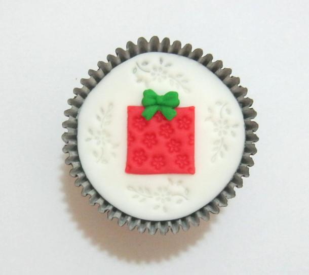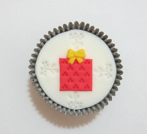 Cupcake Natal – Presente com detalhe quadrado! (11,00)