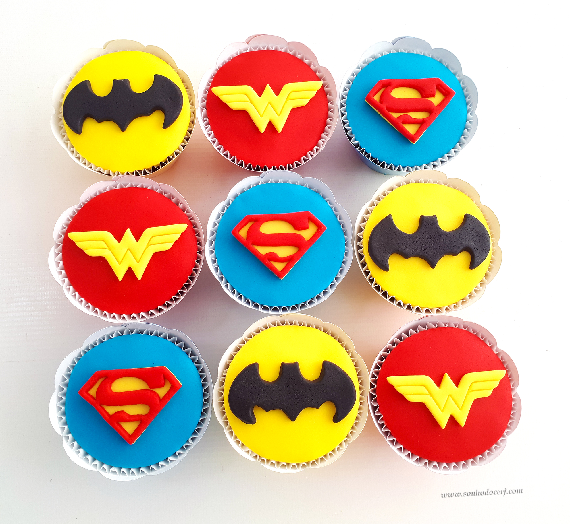 Cupcakes “Super-heróis”! Logo Super-homem 3 cores (12,00), Logo Batman preto 2 cores (9,00), Logo Mulher maravilha (9,00)