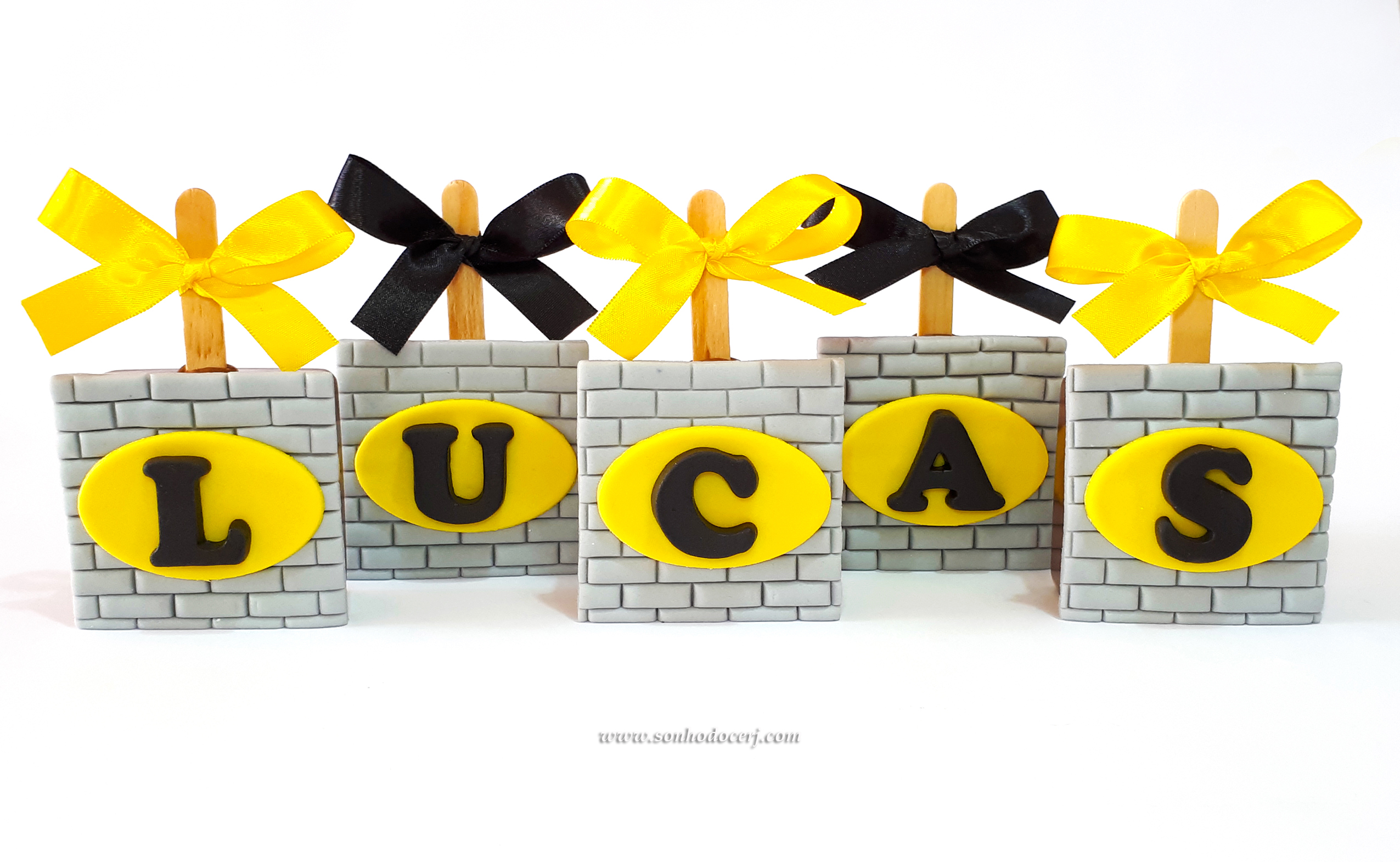 Pão de mel no palito “Batman”! Letra ou número com fundo muro (14,00)