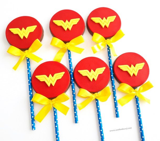 Pirulitos de chocolate “Super-heróis”! Logo Mulher-maravilha (8,00)