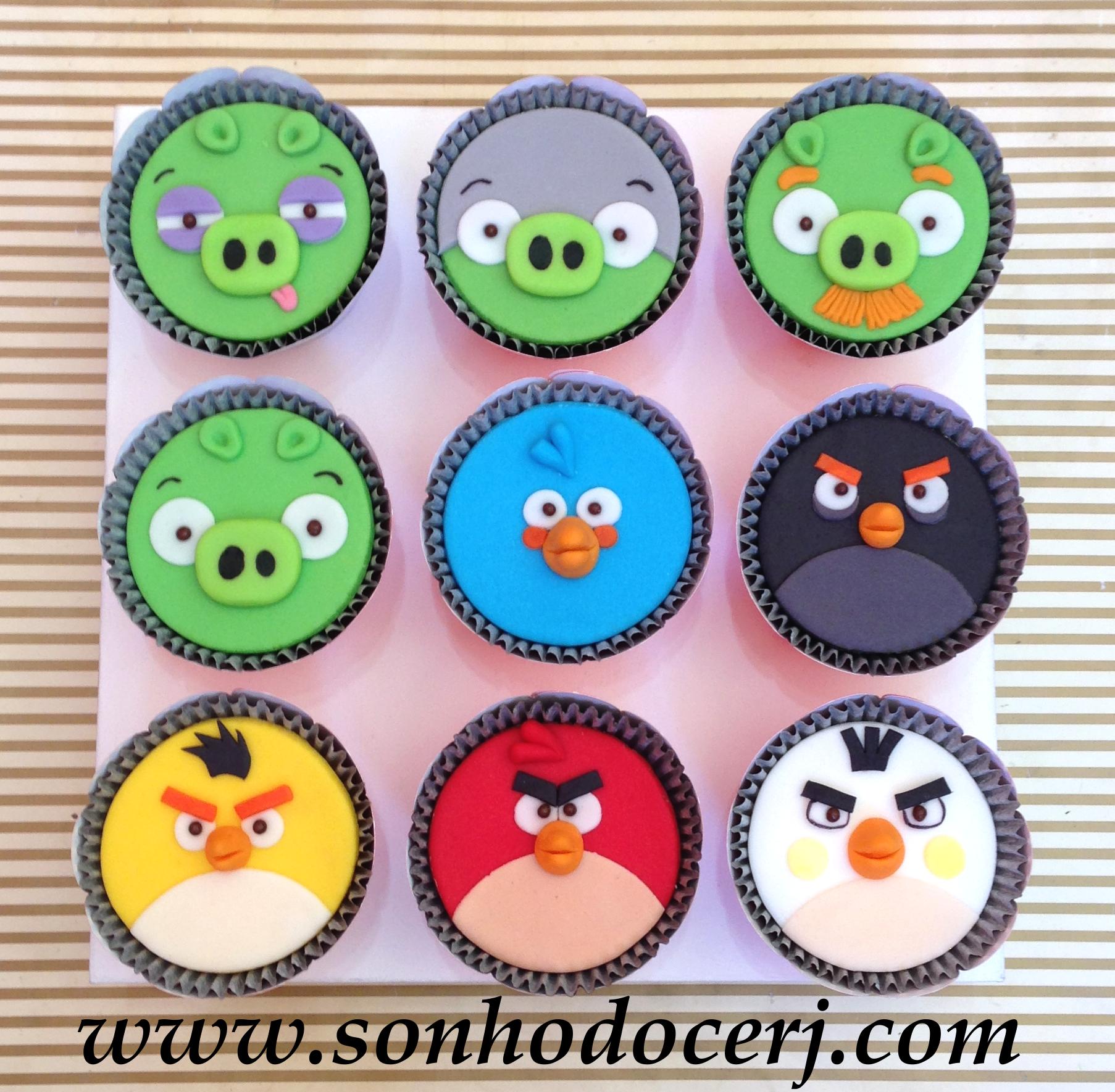 Cupcakes Angry Birds em alto relevo! Pássaro Amarelo (15,00), Pássaro Bomba (15,00), Pássaro Vermelho (15,00), Porquinho (15,00)