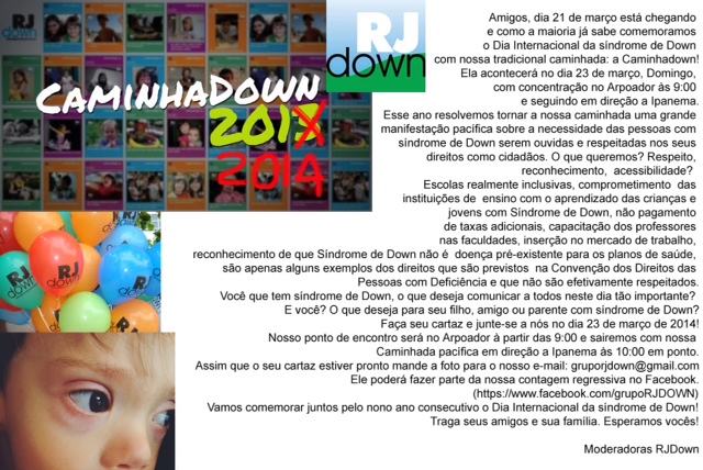 É com muuuito carinho que a Sonho Doce a partir de hoje (18/03/2014) passa a apoiar e ajudar a divulgar eventos sobre a Síndrome de Down!!!