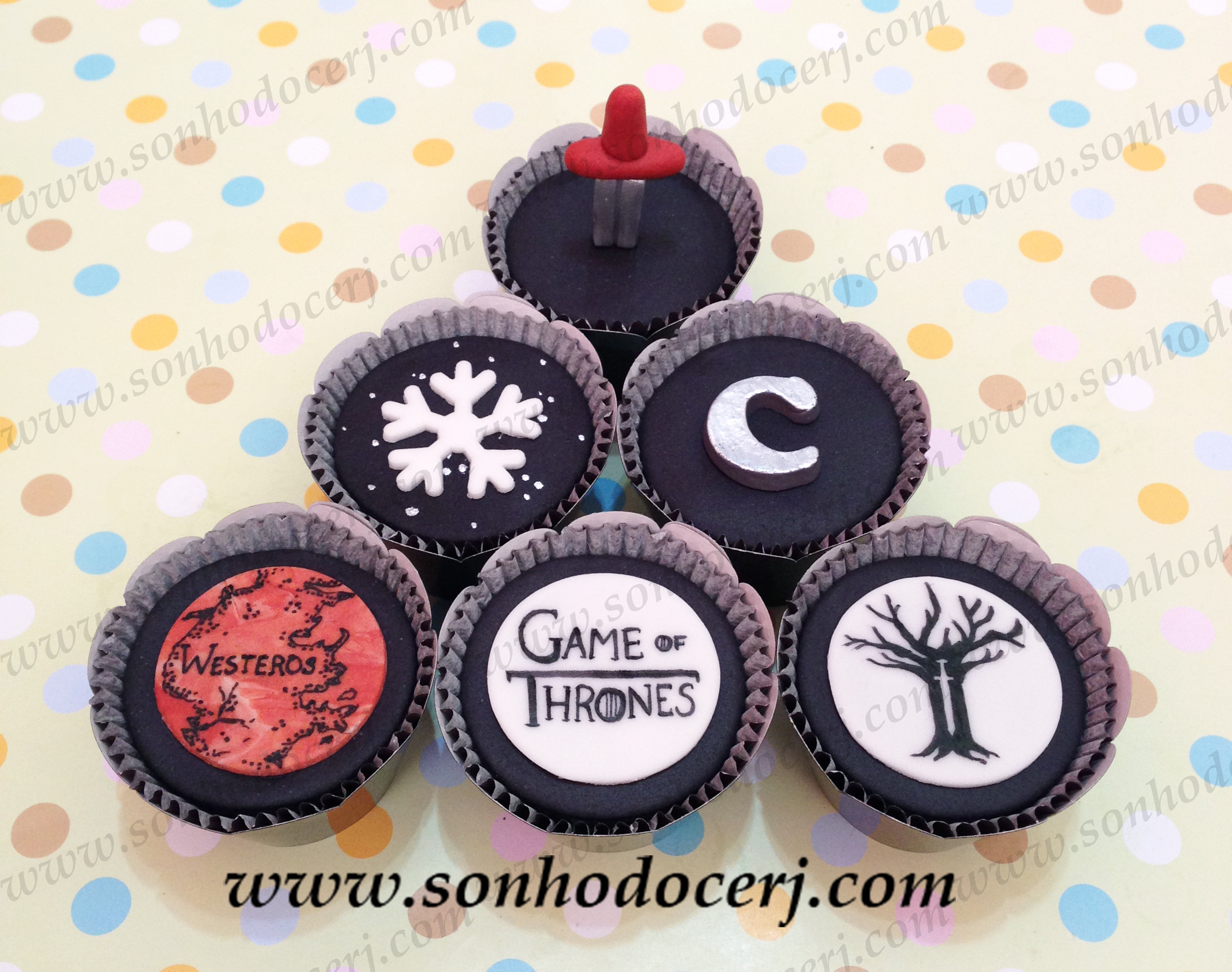 Cupcakes Game of Thrones! Espada 3D (12,00), Floco de neve (10,00), Letra (10,00), Mapa (15,00), Logo (15,00), Árvore (15,00)